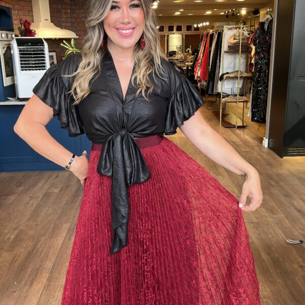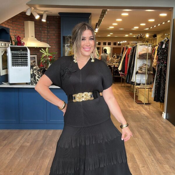 Bel Lastikli Deri Siyah Kısa Pantolon