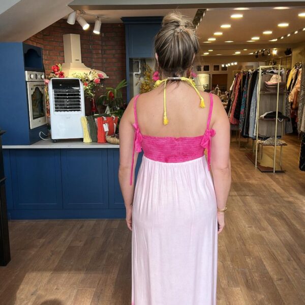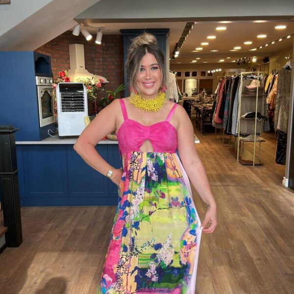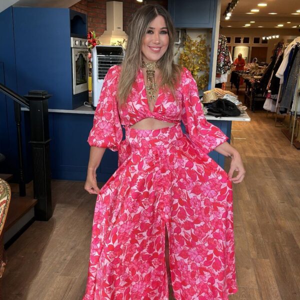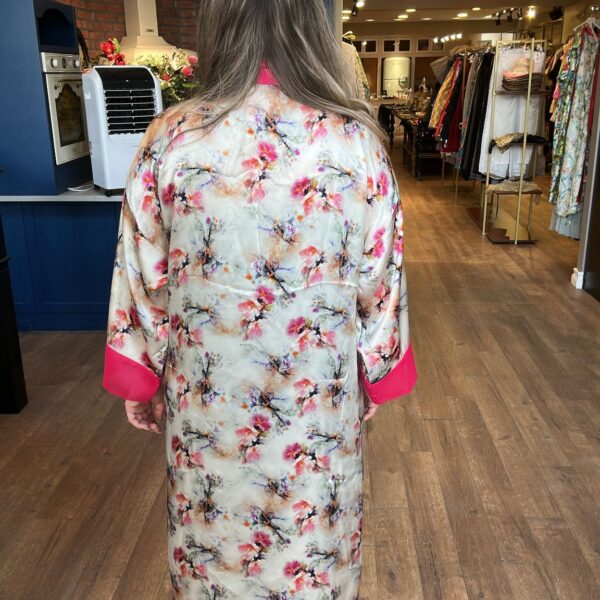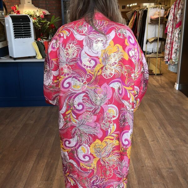 Varaklı İpek Desenli Pembe Uzun Kimono