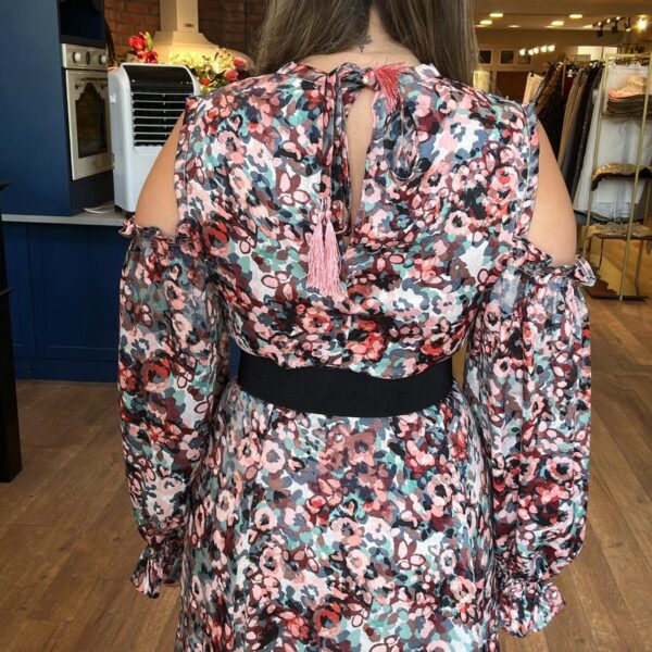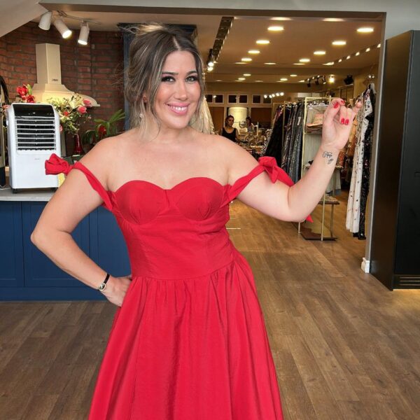 Arkası Gipeli Kolları Bağlama Detaylı Kırmızı Elbise