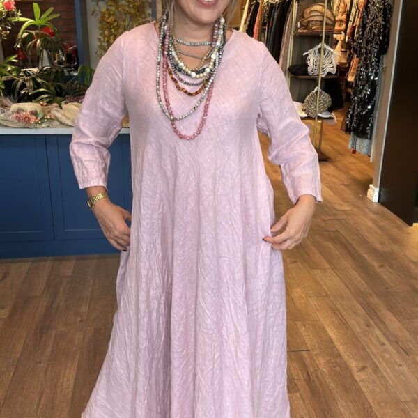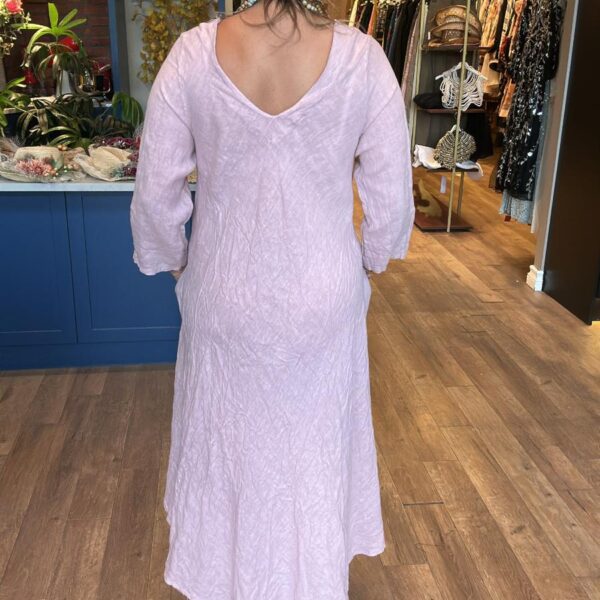 V Yaka Rahat Kesim Uzun Keten Elbise