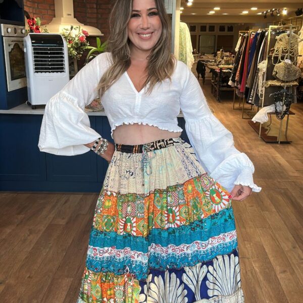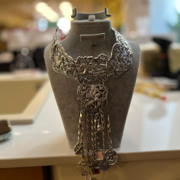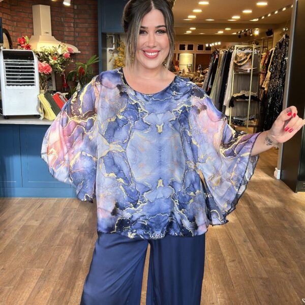 Boyun Bağlamalı Desenli Bluz Pantolon Takım