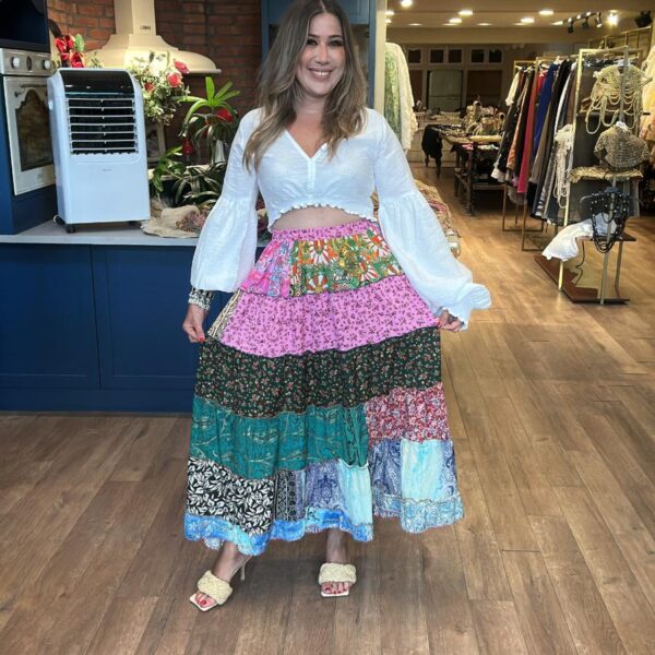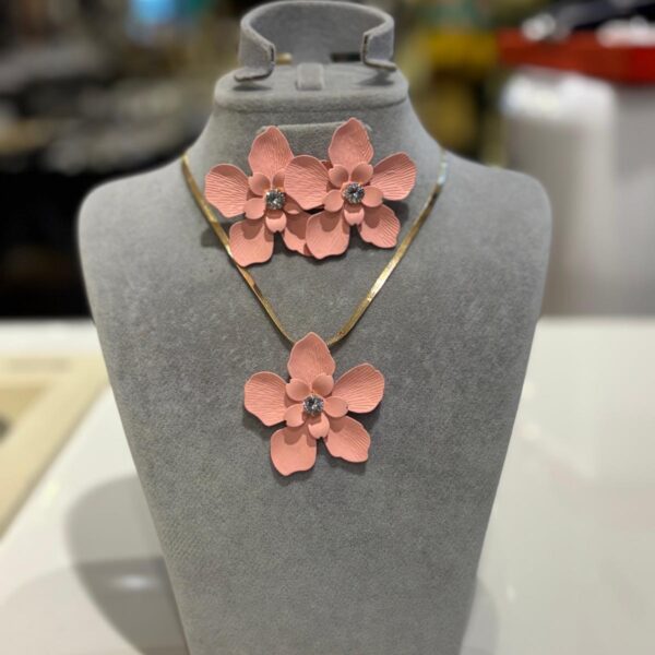 Göğüs Detaylı Pembe Desenli Uzun Elbise