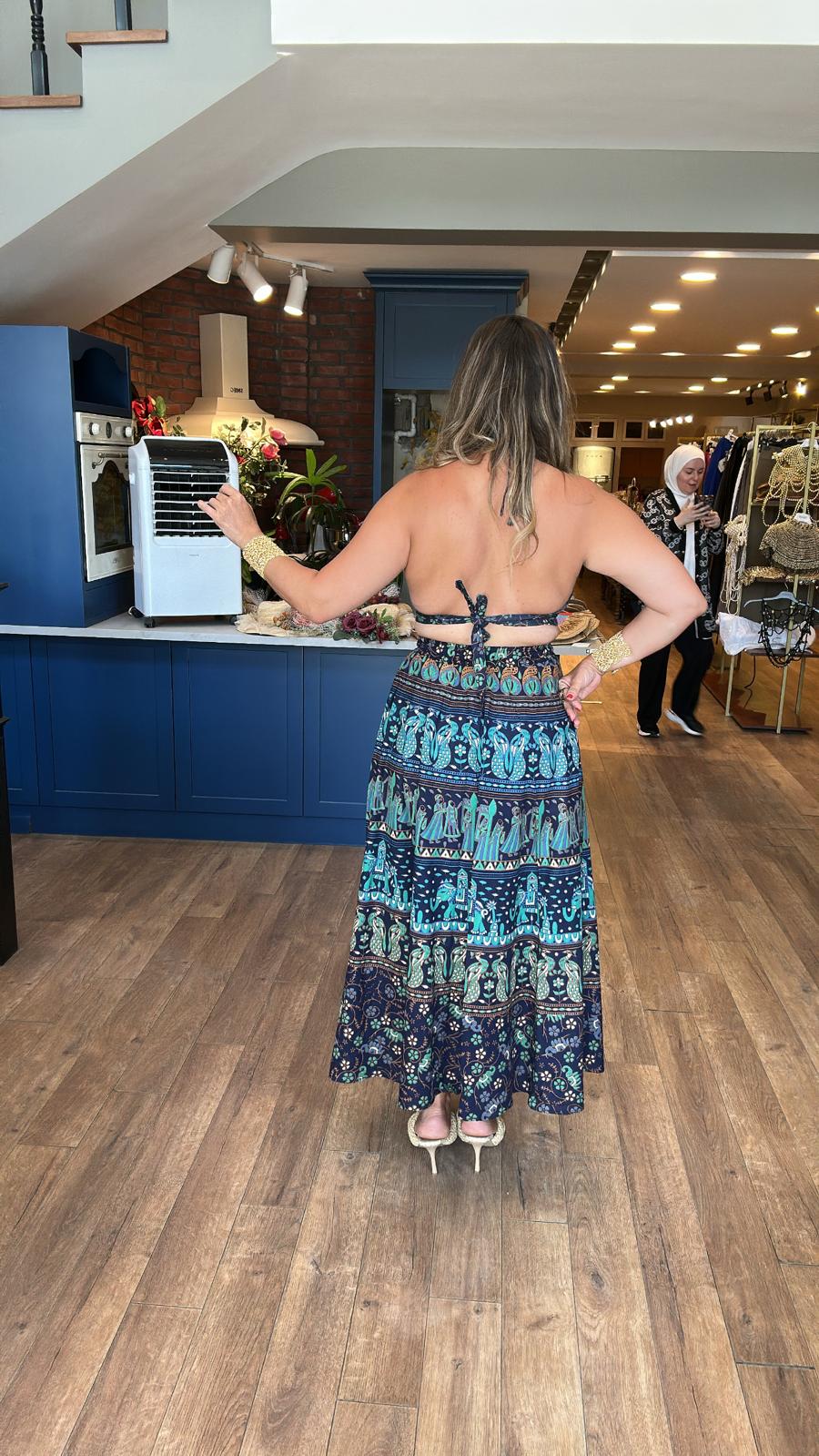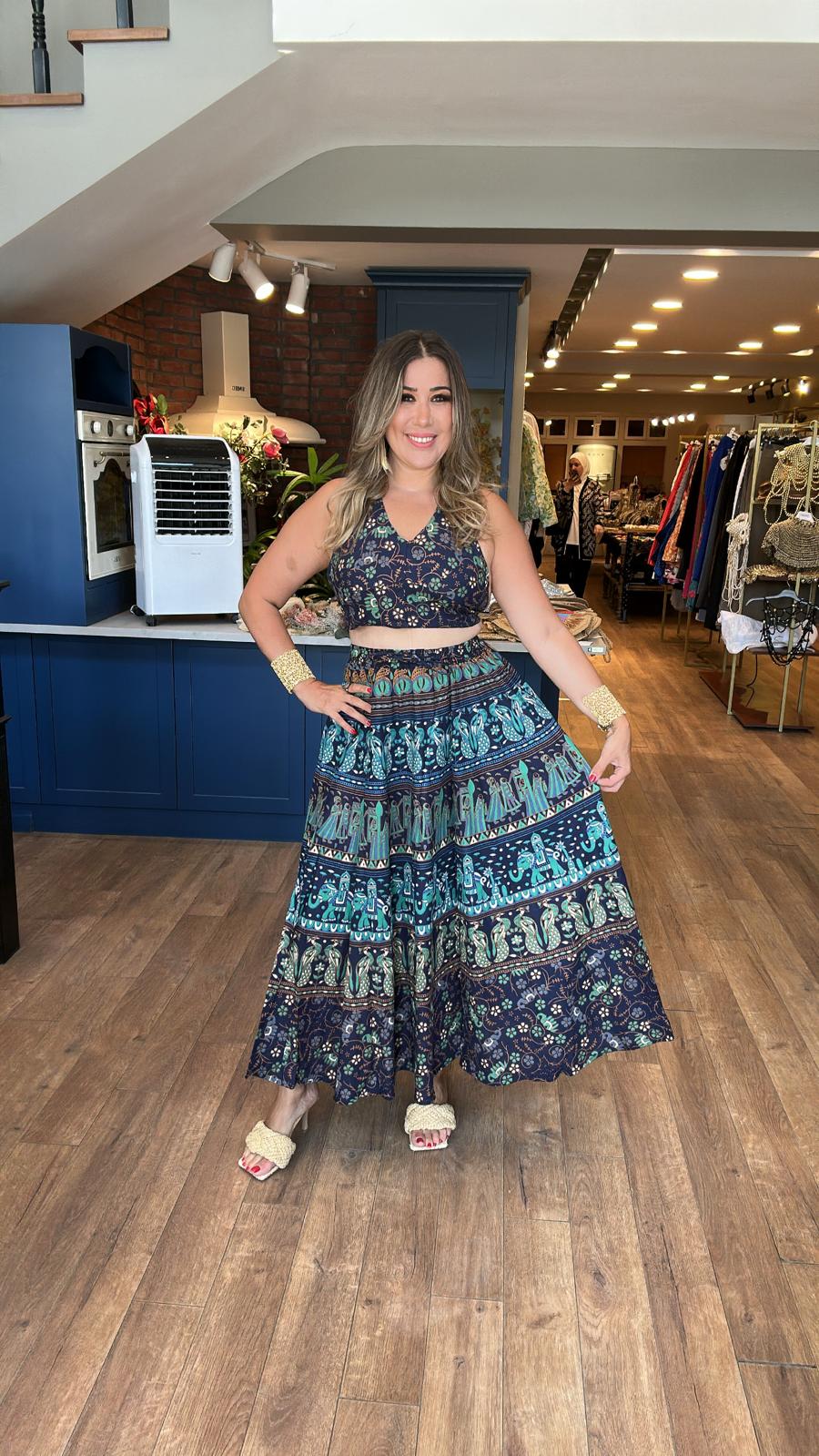 Boyun Bağlamalı Desenli Bluz Pantolon Takım