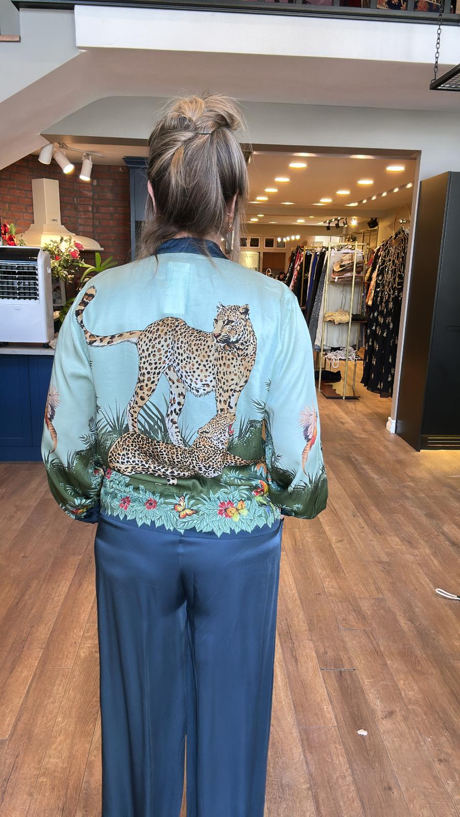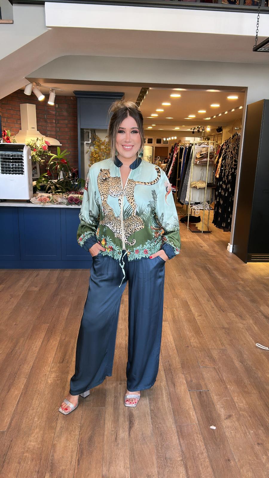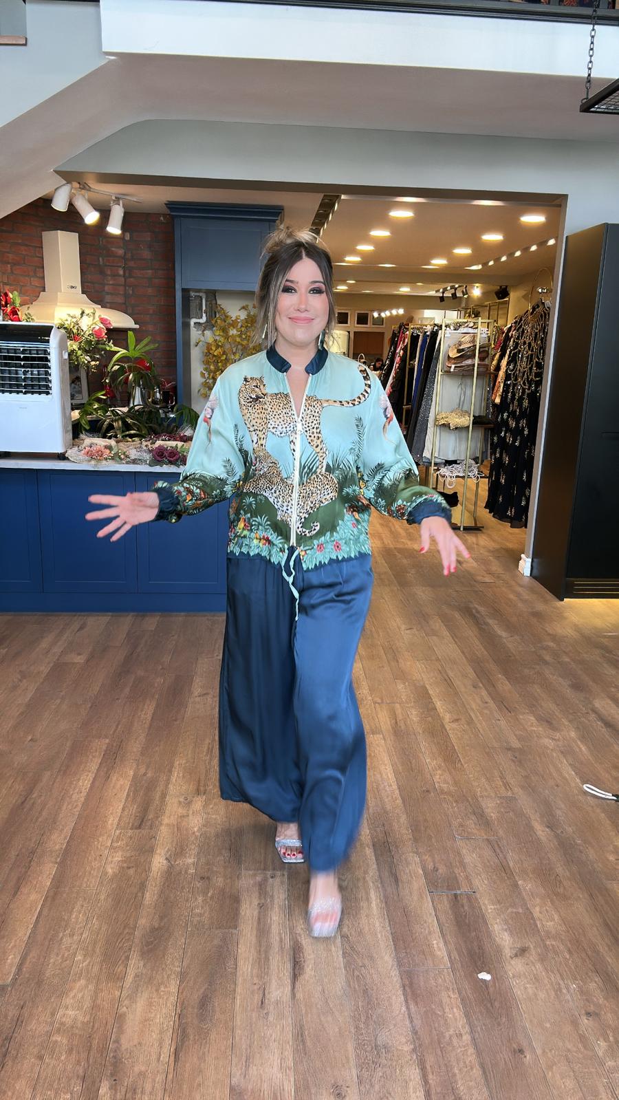 Kaplan Desenli Fermuarlı Ceket Pantolon Ceket Takım