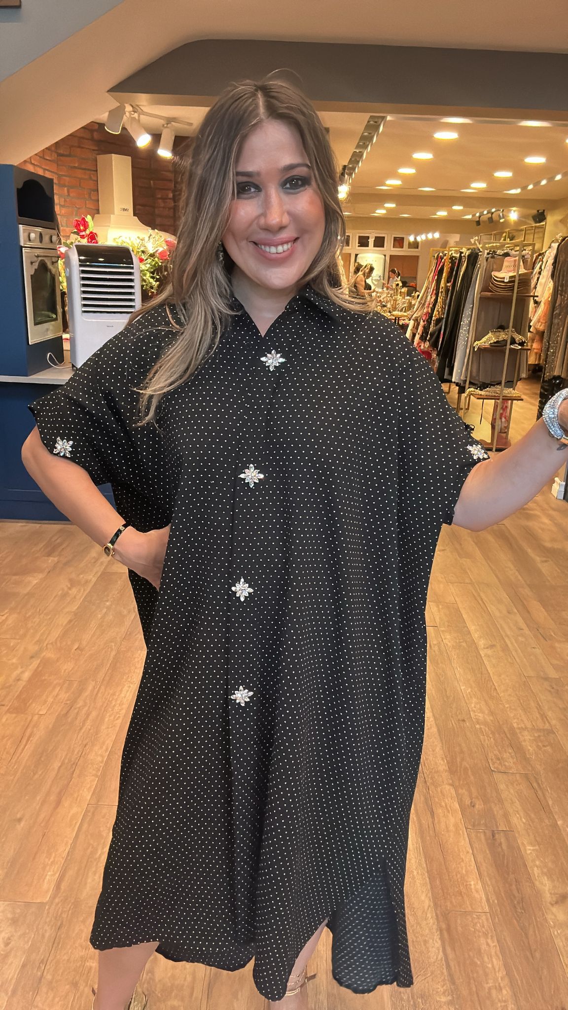 Noktalı Kısa Yarasa Kol Oversize Elbise