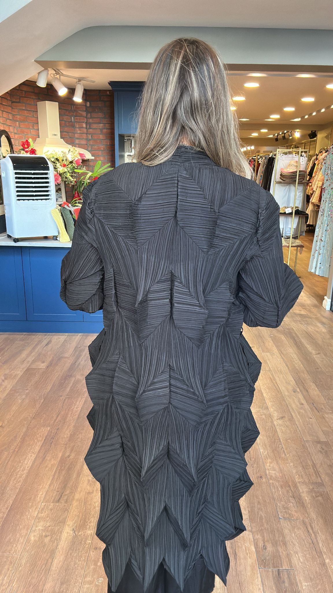Parça Detaylı Esnek Kumaş Uzun Ceket