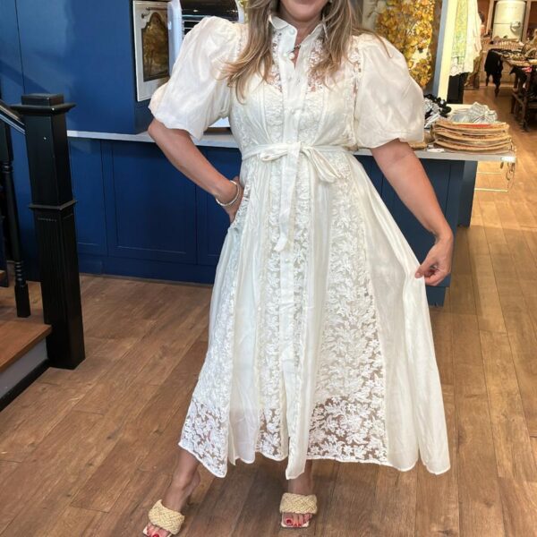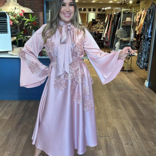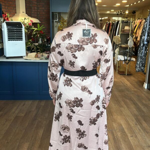 Çiçek Desenli Taş İşlemeli Saten Gömlek Elbise