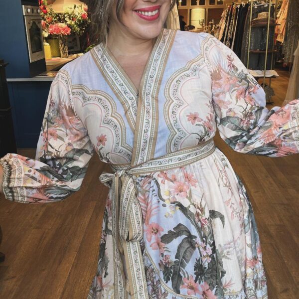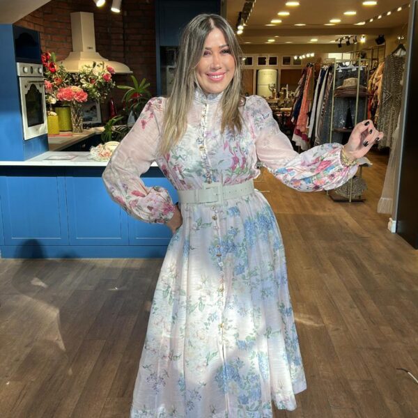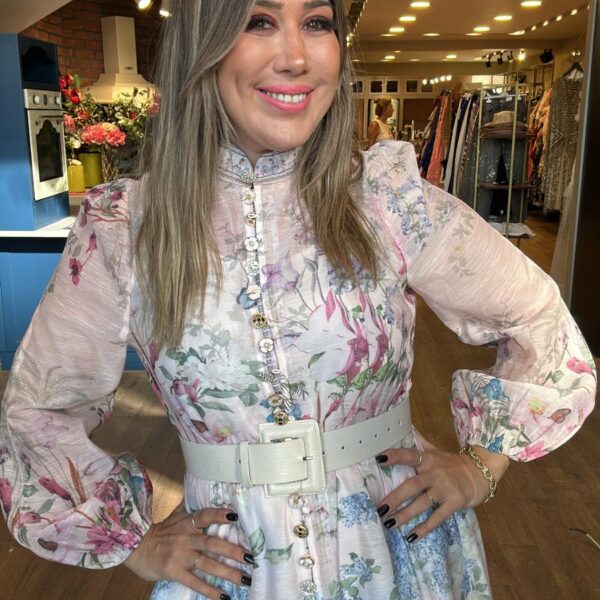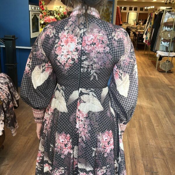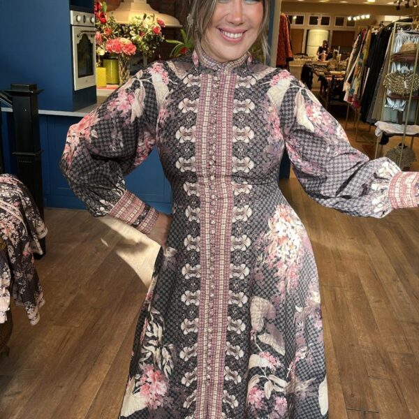 Çiçek Desenli Düğme Detaylı Uzun Elbise