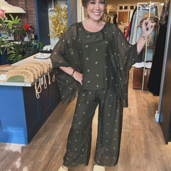 Kendinden Desenli Pantolonlu İpek Takım