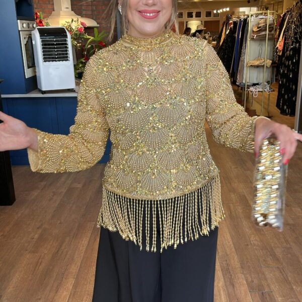 Gold Tamamen Taş İşlemeli Abiye Ceket