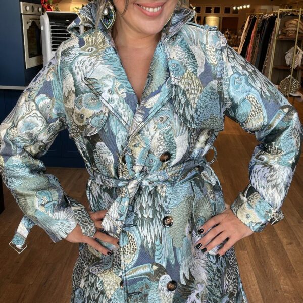 Çizgili Yakası Gül Detaylı Ceket
