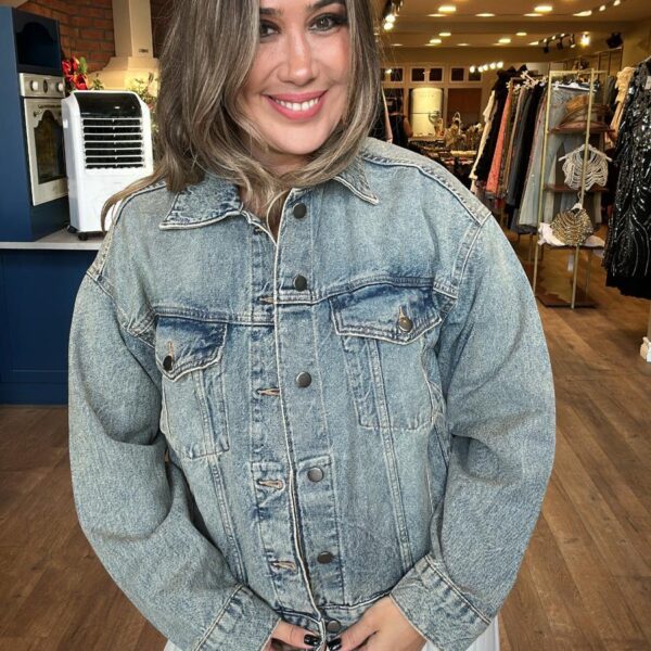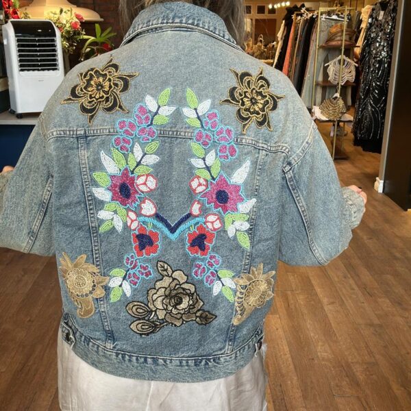 Arkası Boncuk İşlemeli Kısa Kot Ceket