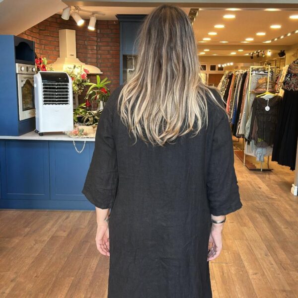 Delikişi Uzun Keten Siyah Gömlek