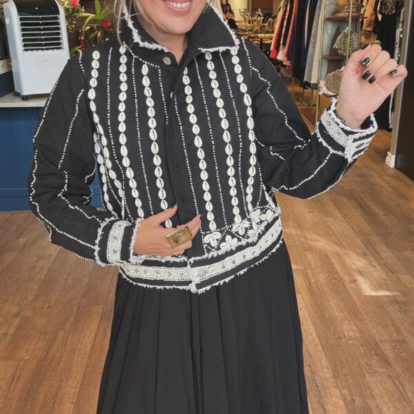 Deniz Kabuk İşlemeli Siyah Ceket