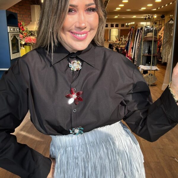 Çiçek Düğme Detaylı Siyah Gömlek
