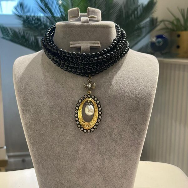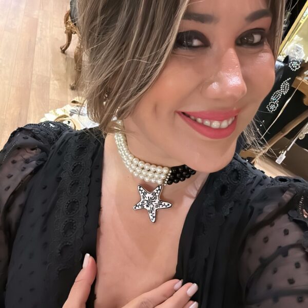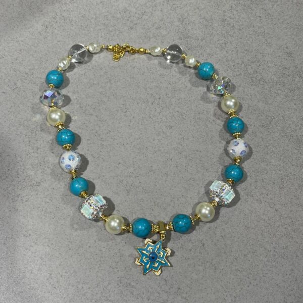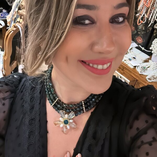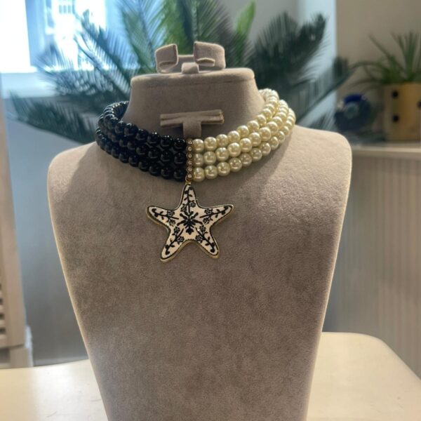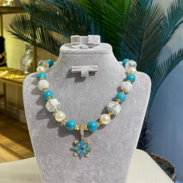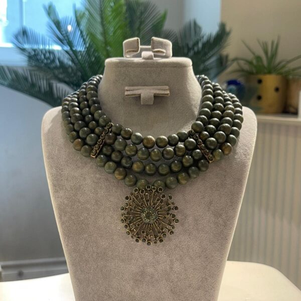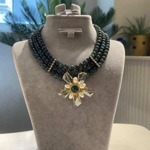 Yeşil Mat İnci Yıldız Uçlu Kolye