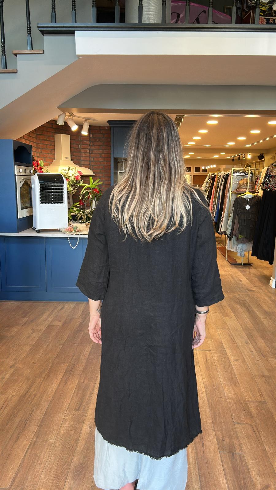 Cepleri Pullu Uzun Keten Kimono