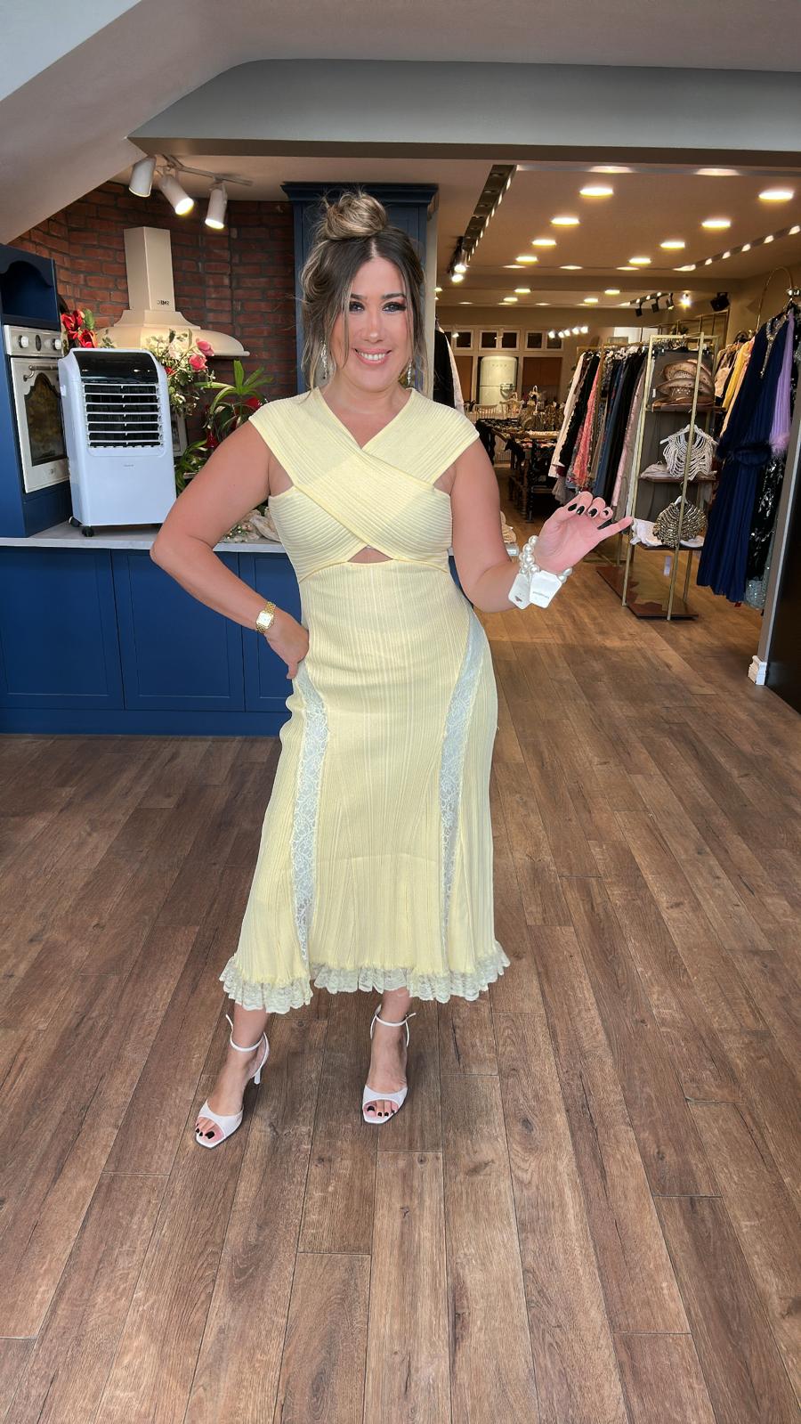 Ön Dantel Detaylı Triko Midi Elbise