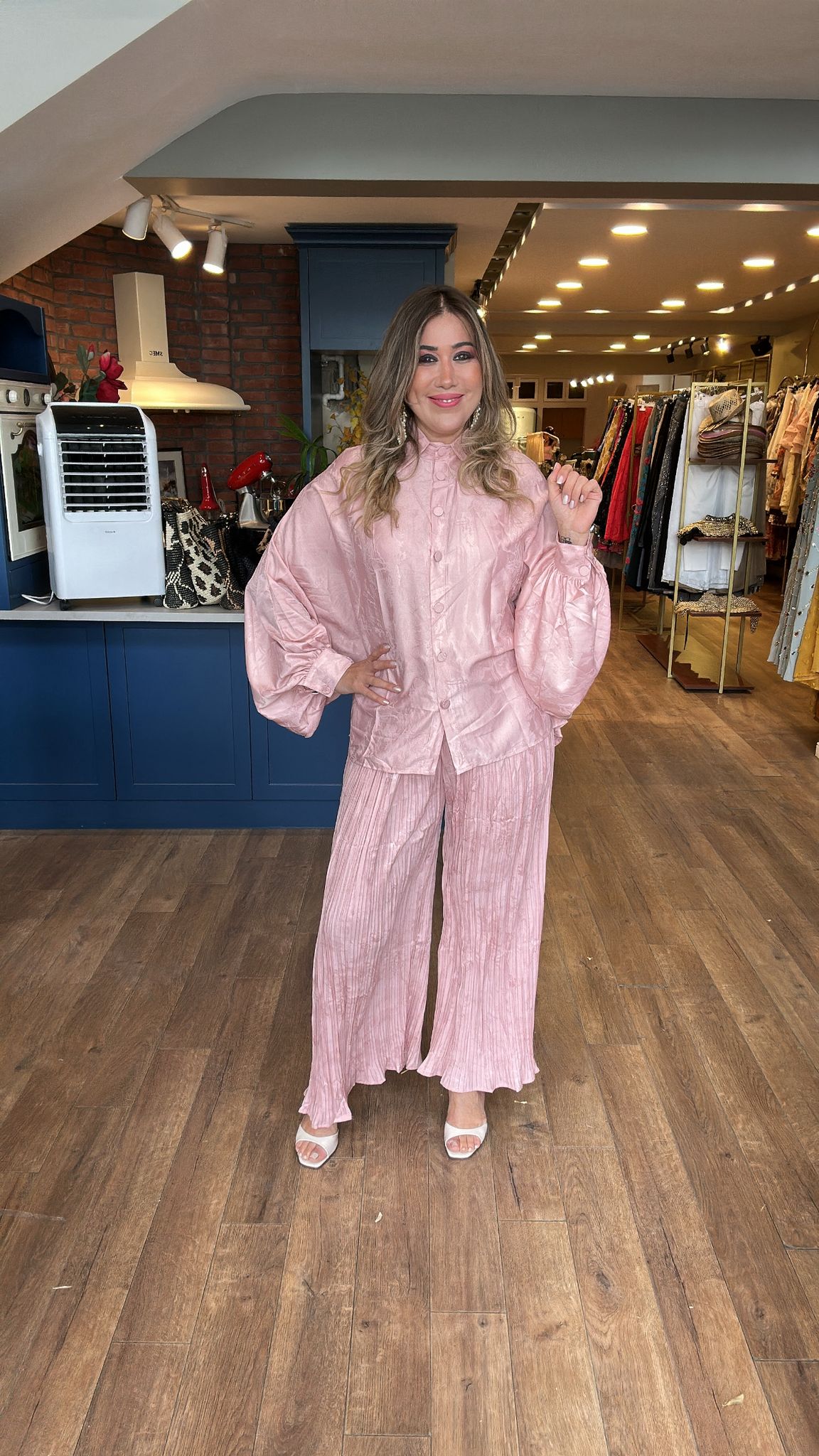 Parlak Şeritli Pantolonlu İkili Takım
