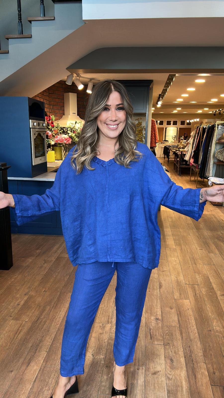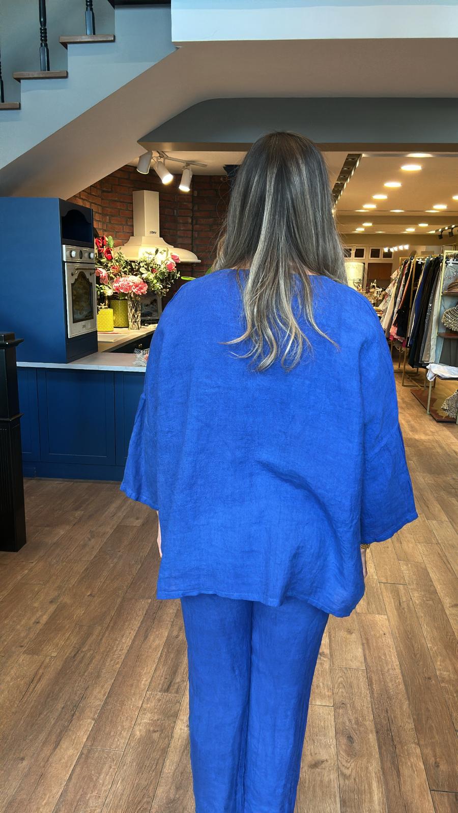 Rahat Kesim Pantolonlu Keten Takım